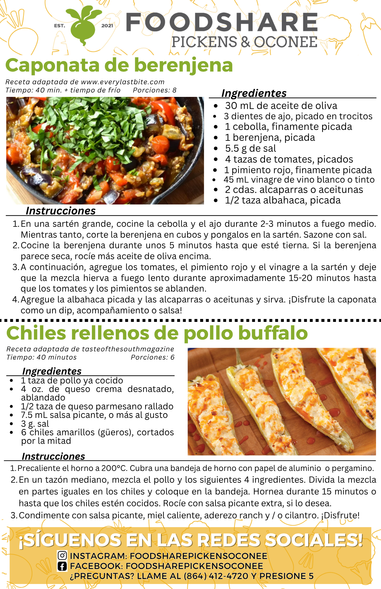 Llámenos (864) 412-4720 y presione 5 o envíenos un correo electrónico a foodshare@feedandseedsc.com