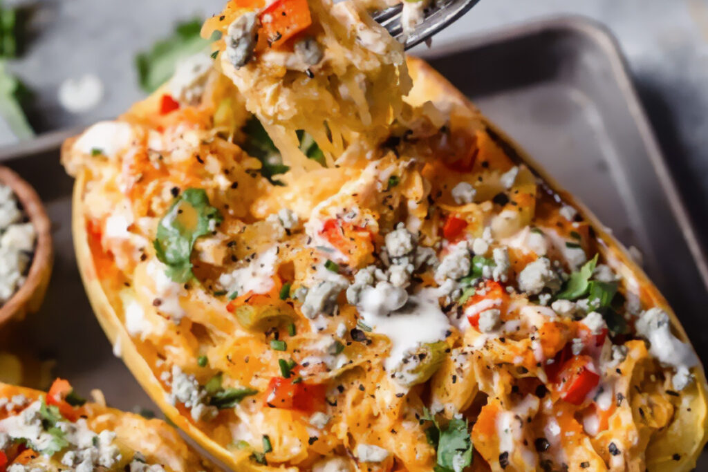 Calabaza Espagueti Rellena De Pollo con Salsa Búfalo